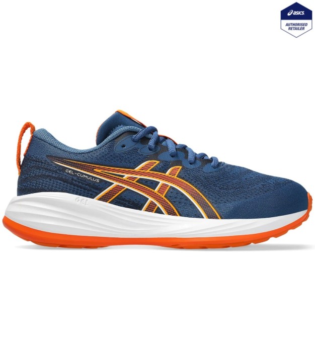 The GEL-CUMULUS 27 GS (Grade School) shoe is a versatile everyday trainer for young and active feet. An engineered mesh upper improves breathability to keep feet cool throughout the day. AMPLIFOAM cushioning and GEL technology are strategically positioned in the midsole. These materials help create soft landings and a comfortable cushioning experience.