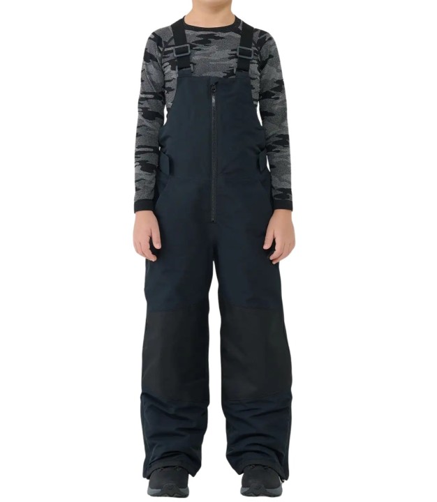 These insulated boys' snowboard bib trousers are built for challenging mountain conditions, featuring the high-performance NEO DRY WP 10,000 / MVP 8,000 membrane for excellent waterproofness against heavy snow/rain and superior breathability. Maximum dryness is ensured by a water-repellent impregnation on the outer layer and fully taped seams. Designed specifically for snowboarding, they include integrated braces (bib style) for maximum coverage, an adjustable velcro belt for a customized fit, and built-in snow gaiters. Durability is enhanced by zonal reinforcements made from rip stop fabric in high-wear areas. Functional details include a main zip closure, two side pockets, profiled knees for unrestricted movement, zipped bottom leg openings, and a lower leg snap pin-up option, all finished with reflective elements for visibility.