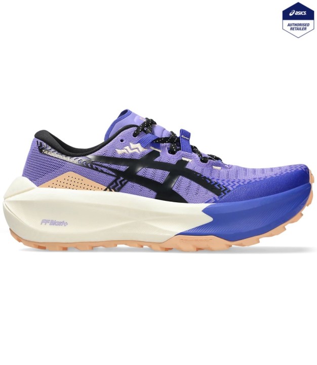 The TRABUCO MAX 5 shoe features advanced grip and comfort properties that help you soar through the trails with confidence. ASICSGRIP technology is placed in the outsole to help you experience better traction on off-road surfaces. FF BLAST PLUS technology in the midsole provides cloud-like cushioning and a responsive energy return. The weight is approximately 13 grams lighter than the previous version. Its water-repellent mesh helps reduce water absorption so you can keep comfortable in wet conditions.