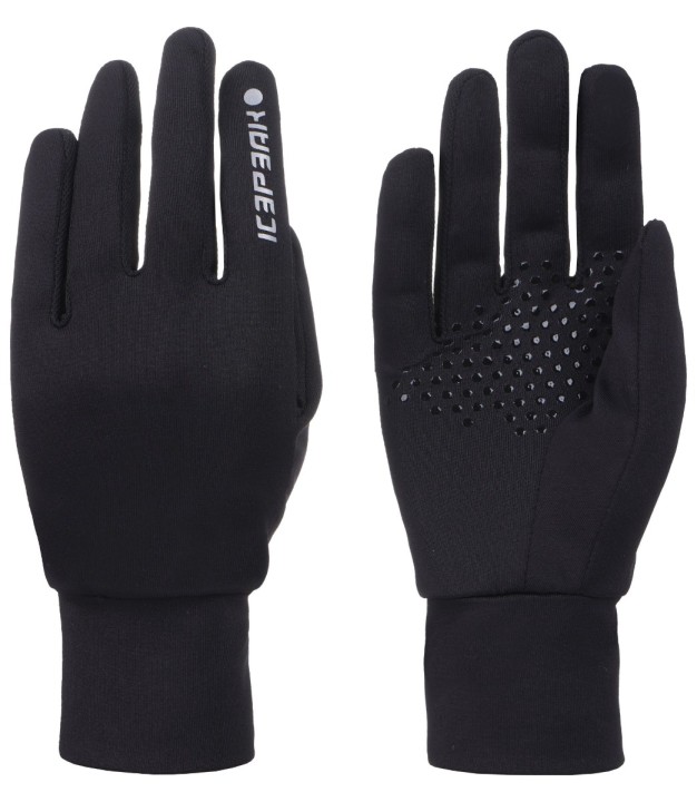 Icepeak unisex gloves. This product features reflective elements; however, the product is not a reflector and is not a safety vest. Always wear a separate reflector when moving in the dark. Logo print. Non-slip print on the palm. Ventilation through mesh. Special attention was paid to functionality and comfort during the design process of this A.W.S. ACTIVE product, making it suitable for both intense and relaxed activities. The fingertip touchscreen technology allows for the operation of screens without having to remove the gloves. The fabric allows moisture to evaporate quickly, ensuring a dry and comfortable feel at all times.