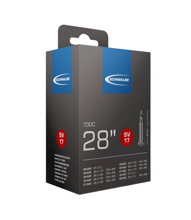 Schwalbe standard inner tube no. 17 for bicycle tires in size 28" inch/700C (ETRTO 28/47-622/635). Particularly suitable for TOUR, CITY and TREKKING. Retains air for an exceptionally long time. Thanks to the best material quality and uniform wall thickness. Maximum reliability that has proven itself millions of times over.